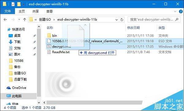 • 拖动ESD映像文件到decrypt.cmd文件上即可,如下图: