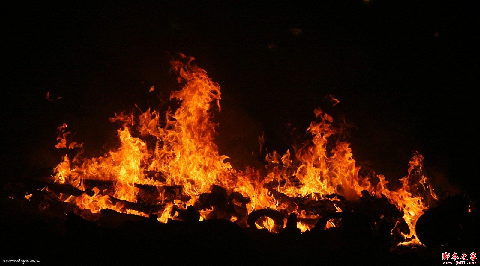 效果图并不复杂,不过细节部分比较难。首先需要用画笔等把地面部分渲染出来。加入人物后还需用火焰素材等增加动感火焰效果,用到的火焰需要截取并变形处理。后期再配合火焰渲染烟雾并加入装饰素材即可