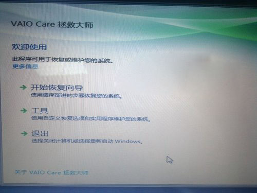 1,在索尼笔记本关机状态下按下ASSIST键(部分机型不支持此功能)直接运行VAIO Care拯救大师,然后开始恢复计算机,单击开始恢复向导。如下图所示: