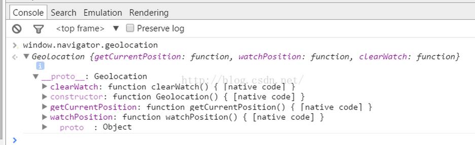 首先,我们在浏览器中按F12打开console,输入window.navigator.geolocation看看定位信息!