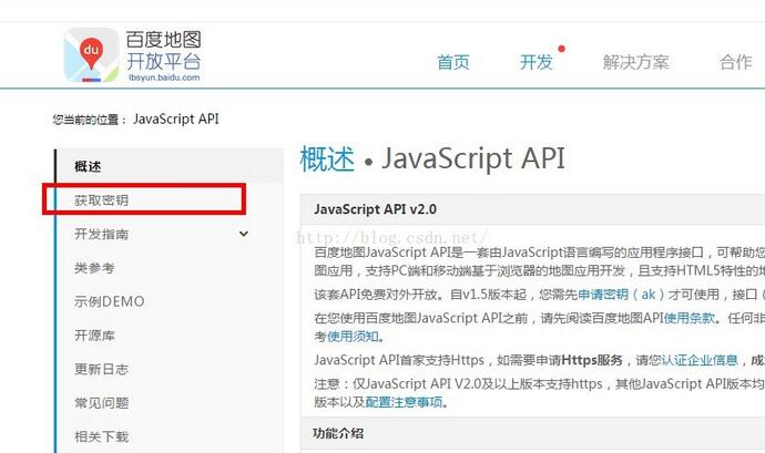 然后得到密钥之后,我们回到主页http://lbsyun.baidu.com/index.php?title=jspopular