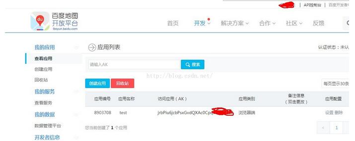 Referer白名单:指的是谁可以访问你的应用,通过什么方式访问你的应用,这里填写一个星号' * ',意思是全部人都可以访问,因为只是做测试可以这样做,到以后项目如果使用到,会有相关的加密方式等等!!然后点击提交完成创建!!