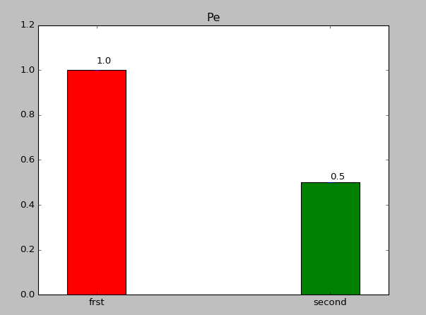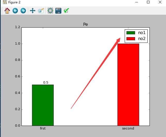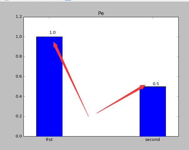 1.1上面中rects=plt.bar(left=(0.2,1),height=(1,0.5),width=0.2,align=”center”,yerr=0.000001)这句代码是最重要的,其中left表示直方图的开始的位置(也就是最左边的地方),height是指直方图的高度,当直方图太粗时,可以通过width来定义直方图的宽度,注意多个直方图要用元组,yerr这个参数是防止直方图触顶。