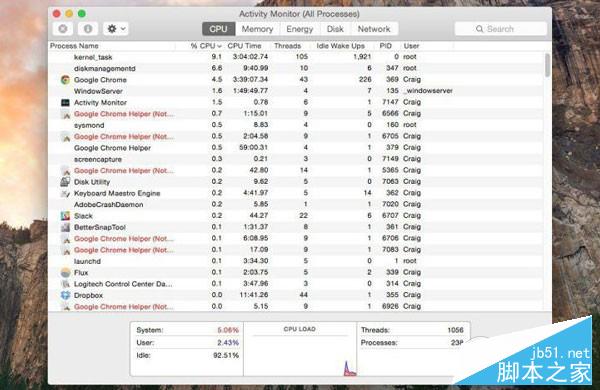 你也可以使用Activity monitor(活动监视器),它可以显示什么应用或者服务正在大量消耗CPU性能。操作方法:Applications>Utilities>Activity Monitor,最后选择CPU选项。