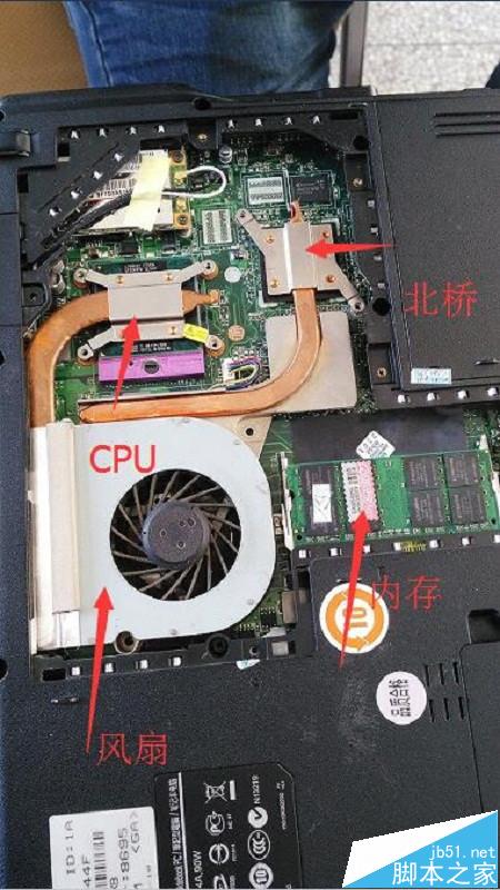 2、盖板拆开后的样子。可以看到CPU、北桥和风扇通过导热铜管连接在一起。拧开相应的螺丝钉即可把它们一起拆下来(大胆拆吧)。