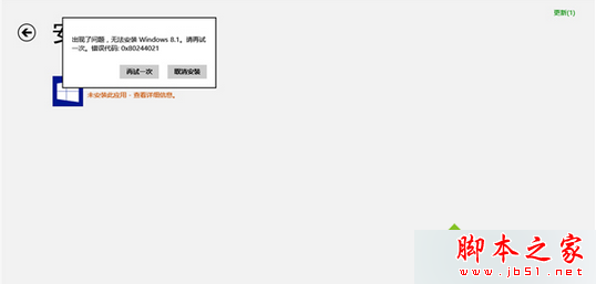 win8系统渐渐退出市场,很多用户喜欢win8系统界面风格,不想要退回win7系统,所以将系统升级为win8.1系统。但是在下载过程中就出现问题,无法安装win8.1系统提示错误代码Ox80244021,具体问题现象如下所示: