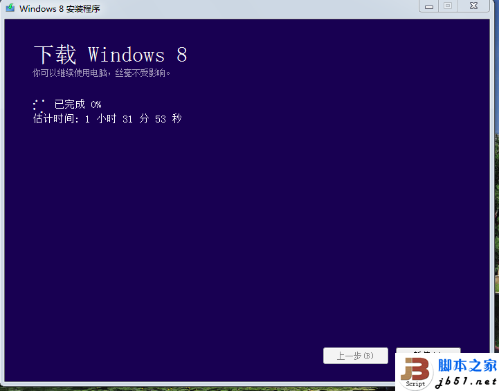 第四步:在线下载window 8,根据网速大小计算你所花的时间,我的90分钟左右。