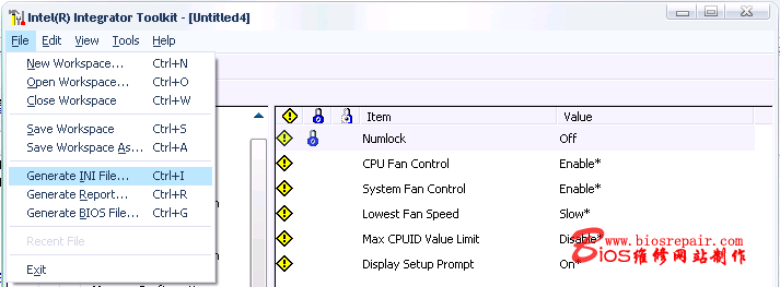 按我们的要求修改后,点击“FILE”--“Generate INI File”或点击工具栏中的