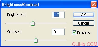 首先添加亮度/对比度调整层,降低亮度(大约-30)。然后添加色相/饱和度调整层,降低饱和度(大约-35)。