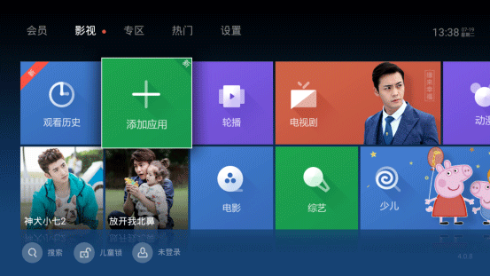3、点击安装完成之后,泰捷视频的“添加应用”的位置就会直接变成该应用的开解入口,下次直接代开泰捷视频进入就可以看高清直播了。