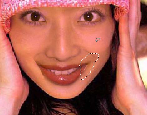 9.回到pp fox的图层,为了修复画面左边的嘴角,用套索工具选取右面的嘴角。