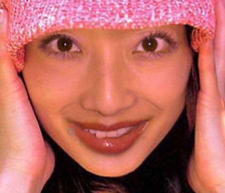 12.新建一个图层make up,用图章工具,勾选use all layers(作用于所有图层)选项,在新层上修复左边嘴角多余的高光和黑痣。