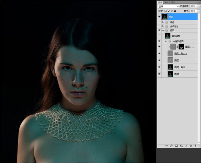 妆片修图是个很费时间的事情,一般在修图的时候使用加深减淡及修复画笔工具会比较多一些,这张图的修图,我也是使用的最简单的加深减淡工具。原图的色彩感比较弱,后期的处理上使用了大量的合成及后期光源的绘制。