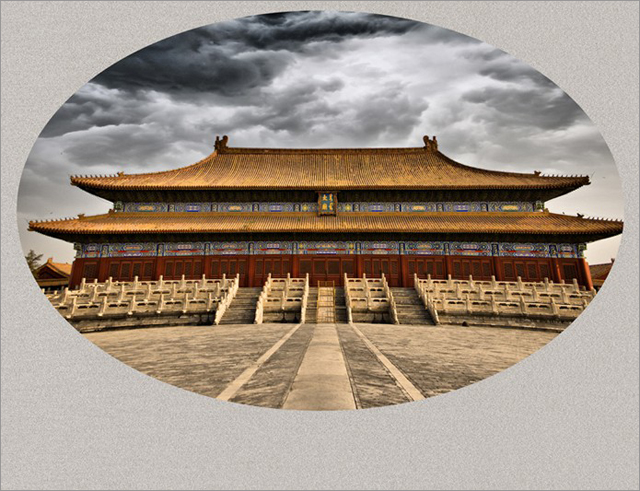 4、对火箭和太庙素材进行抠图【使用磁性套索工具】,摆放入图中,CTR+T调整他们的透视关系。对太庙图层使用CTRL+T,然后右击,选择变形,使太庙紧贴人物身体,给人一种建筑物建在人物身上的感觉。