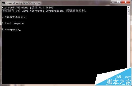 5、再输入“cd compare”命令并回车,进入两个txt文件所在的文件夹中。