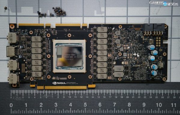 看着密密麻麻的PCB背板,就让很感觉很舒服,看到背板似乎让人感觉2万块钱花的也值了,只是这配色让人感觉这显卡有点发黄。