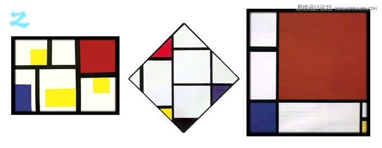 我将其划分为5个不同的区域,不同的空间添加一个有趣的蒙德里安的线。你可以看到,下面的颜色设计,