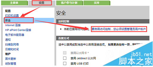 在本文中要和大家介绍一下在电脑中设置HP打印机嵌入式Web服务器(EWS)权限的方法。在打印机的嵌入式Web服务器(简称EWS)中,可以设置打印机进行连接的方式,也可以锁定前面板的一些重要功能,设置访问控制权限,使管理员更加方便安全地对打印机进行管理。