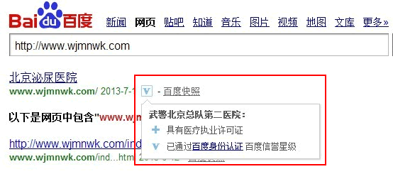 「北京最好的男科医院是哪家?男人是天,家的天,女人的天 ,孩子的天,男人担负着自己和家人的幸福寄托,忙忙碌碌的活着,辛苦却无怨无悔的付出着。」这是哪跟哪?文不对题,狗屁不通。还好你在文中留了网址,蜘蛛 顺着爬过去。结果你猜怎样?这个网站竟然是通过了百度身份认证的。