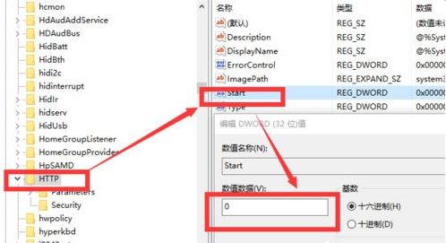 2、如果发现端口被多个占用,你可以用Win+R的方式,输入Regedit进入注册表,找到HKEY_LOCAL_MACHINE\SYSTEM\CurrentControlSet\services\HTTP 修改Start这一项,将其改为0。