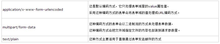 表单元素的enctype属性指定的是表单数据的编码方式,该属性有3个值: