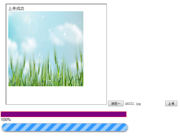 在上传完成后,我展示了两种进度条的CSS,第二种是用最新的CSS3写的。用到了一些CSS3的动画属性。