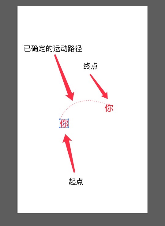 2, 在AI中新建一个和设计稿尺寸一样的文件,再将位移元素分两次拖入该文件中, 如果有运动路线的话也拖入进去,如下所示: