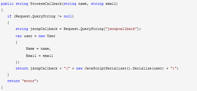return jsonCallback + "(" + new JavaScriptSerializer().Serialize(user) + ")";