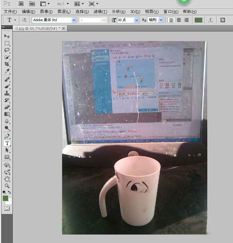 4、如果你只想要杯子而不要上半部份,那么就要对照片进行裁切.点击"裁切"工具.然后用鼠标选中你需要照片的位置.松开鼠标,按回车键或点钩就可以了.