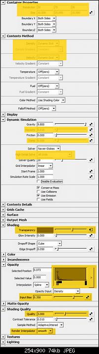 点开流体容器属性的shading栏,下面我们来调节影响我们做出的是浓烟还是墨汁的灵魂参数Opacity。