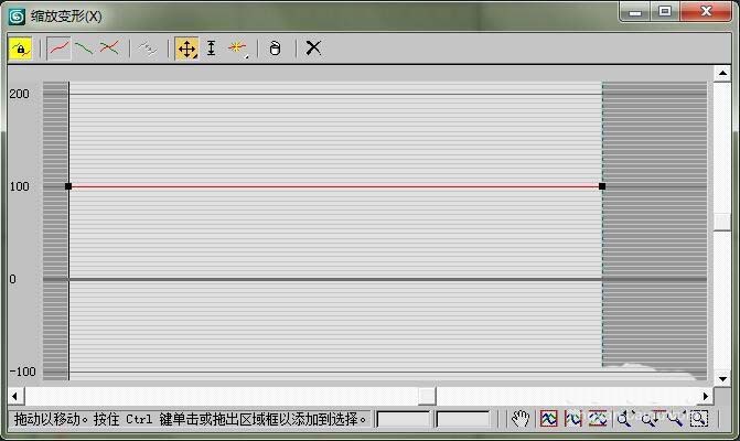 8、打开缩放变形的对话框,初始的缩放曲线是一条直线,可以调节线的形状来改变图形的形状。