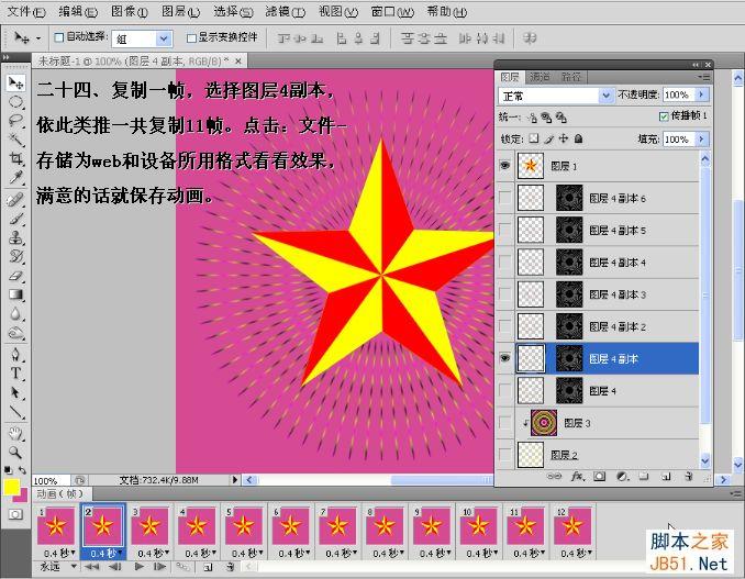 以上就是想人陪西装最近收集整理的关于Photoshop制作动态立体红黄相间五角星的详细教程的全部内容,更多相关Photoshop制作动态立体红黄相间五角星内容请搜索靠谱客的其他文章。
