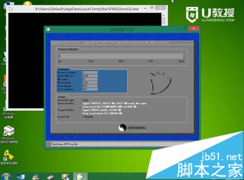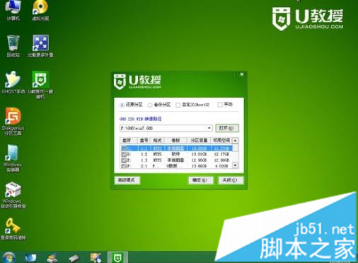 5、进入PE系统中,运行【U教授PE一键装机】,保持默认的设置,选择系统安装分区C盘,确定;