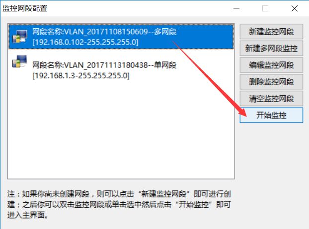 创建多个监控网段后,需要手动依次点击相应的网段进入相应的监控网段,如下图所示: