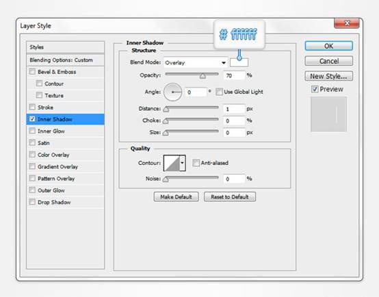 8、选择你所绘制的矢量形状图层, Command/Ctrl-J 复制图层,单击右键,清除图层样式,把复制图层的填充调整为0% ,打开混合选项窗口。添加内阴影,参数如下。