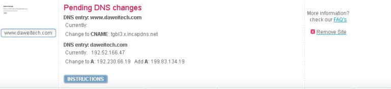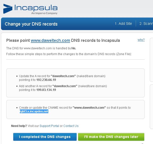 等过了一段时间,Incapsula已经侦测到DNS设定完成之后,我们就开始进行下一步。有些人会好奇,为什么不一开始就设定好DNS?如果我们不依照Incapsula给我们的指示去做,CDN将不启用,所以我们要先当个乖小孩,然后再来叛逆…