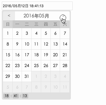 - time:设置是否可以选则时间 (时分) "yyyy/MM月dd日 hh:mm:ss" 序列号时间格式 'default' 默认再input中显示默认时间或者指定时间