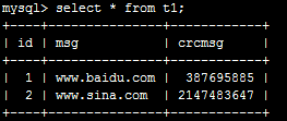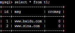 insert into t1 (msg) values('www.baidu.com'),('www.sina.com');