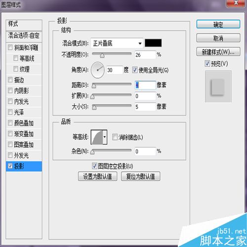 4、执行“图层样式-投影”