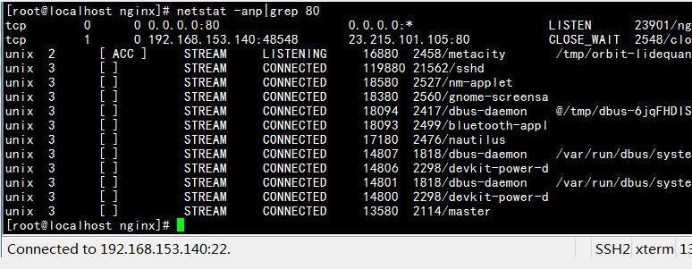 使用netstat -anp|grep 80