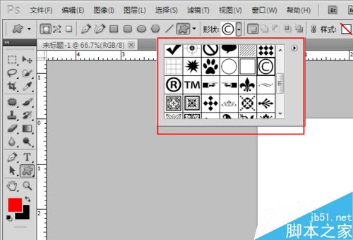 2、先绘制一个形状,例如自定义形状工具。