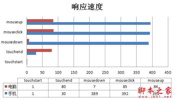 在移动端请适当使用touchstart,touchend,touch等事件代替延迟比较大的Click 事件。Click之所以慢是因为mousedown导致的: