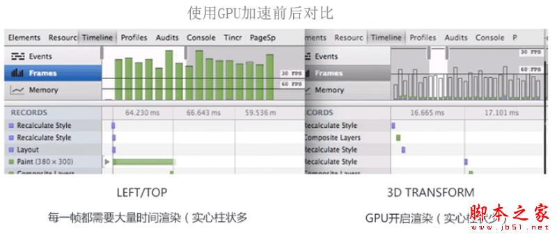 GPU加速实际上是大幅减少了合成/绘制时间,从而大大地提高了页面速度,但GPU加速有自己的缺点: