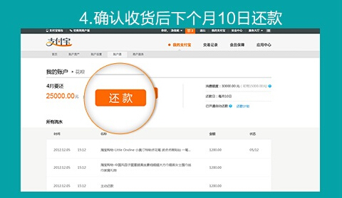 4. 确认收货后下个月10日还款