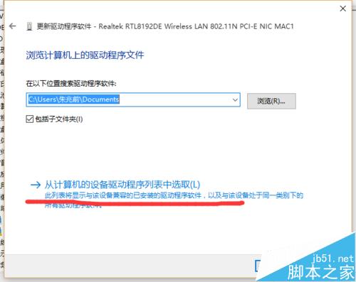 5、选择从计算机的设备驱动程序列表中选取,点击下一步