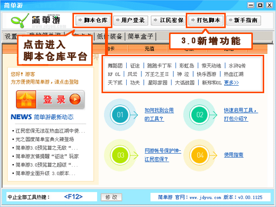 简单游3.0新手脚本使用教程与帮助,现在分享给大家,希望可以做个参考。