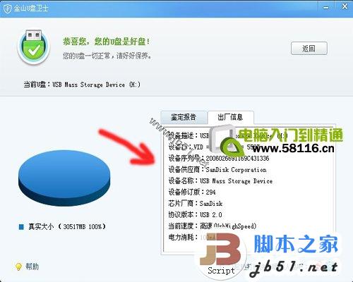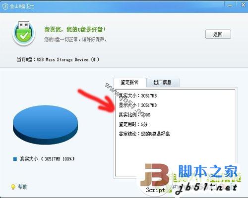 U盘实际容量及厂家详细信息。这个出厂信息也可以知道U盘是不是原品牌厂出的,有些假冒U盘会用杂牌U盘芯片冒充知名厂商的。比如你买了个金士顿的U盘,一检测U盘芯片厂商却显示不是金士顿的信息。