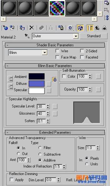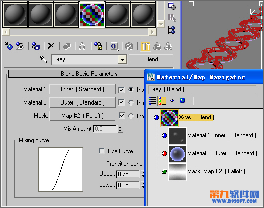 1. 新建一个bend材质:包括inner、outer和falloff三种材质。如下图: