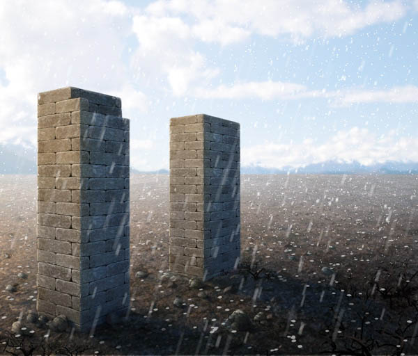 7、然后更近更大的图层,添加一点模糊。记住:模糊方向几乎是垂直的,因为冰雹很重不会被风吹动。