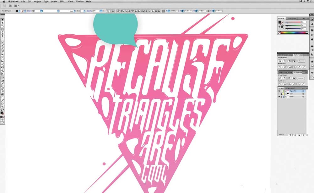 7、一旦你满意你的改进,解锁所有图层,然后选择你所有的路径。打开路径查找器面板(命令/按Ctrl + F9),然后选择合并。然后锁定图层,命名为'类型'